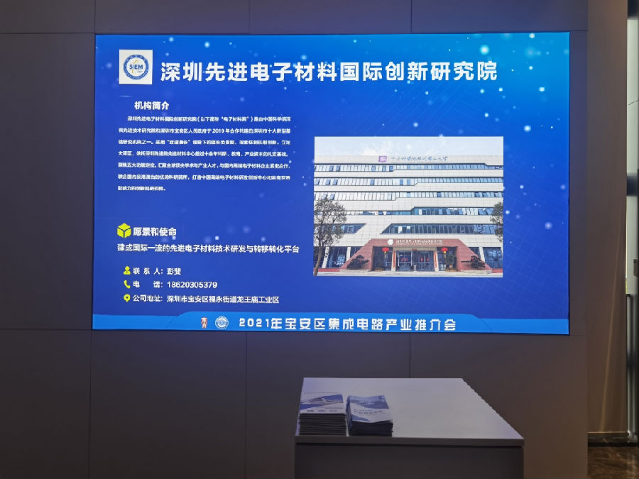 在本次活動中,深圳市先進電子材料國際創新研究院(以下簡稱“電子材料院”)和深圳市化訊半導體材料有限公司(以下簡稱“化訊半導體”)創新亮相第39期寶安發布半導體封裝材料專場,針對先進電子封裝中的絕緣膠膜和器件、電子材料與器件分析測試公共服務平臺及面向超薄芯片制造的臨時鍵合材料產業化與現場的企業進行了深入淺出的交流與互動,在讓更多人走進了解兩家會員單位的同時,也向眾多寶安半導體相關企業分享了集成電路封裝前沿技術發展訊息,促進產業信息互聯互通。同時寶安區5G產業技術與應用創新聯盟的會員單位深圳市博敏電子有限公司也在3樓設立了展臺,向市區領導及集成電路行業同仁展示了公司硬核產品。